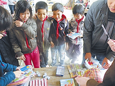 3月5日,中铁二十三局集团全面开展了以“关爱农民工子女志愿服务”为主题的志愿者服务日活动。图为该集团轨道交通公司成都公司的16名农民工子女,每人收到了一份新学期礼物。官国强 肖振 摄