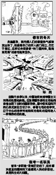 漫画,连同电影与话剧,乃是外国文艺形式中最早最快达到中国化、人民化的文艺形式,因为这三种文艺形式在国难频仍的近代中国,最能迅即表现敏感的时政,最能表达广大人民的心声,所以最容易为各层面的中国民众所接受和欢迎,因而这类文艺形式自然成为了最有历史责任感的艺术家们选择和支持的艺术形式。于是在不到半个世纪之中,这三种艺术形式早已各自形成了时代艺术的高峰,这应当是不争的历史事实。
