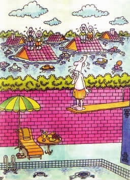 我们对印尼画家西亚诺丁虽不甚熟悉,但这幅作品是披露社会不公的佳作。墙里墙外贫富竟如此悬殊!别墅主人的良知尚存否?