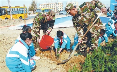 在第三十三个植树节到来之际,威海边防支队小观边防派出所民警与文登南海实验小学师生一同开展了以“携手共建绿色家园”为主题的爱心植树活动,倡导人们爱护树木,保护环境。杜昌乐 刘敏 摄