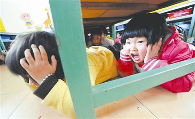 在楼房里:要远离外墙及门窗,可选择厨房、浴室等开间小、不易塌落的地方躲藏。躲藏的具体位置可选择桌子或床下,也可选择坚固的家具旁或紧挨墙根的地方。