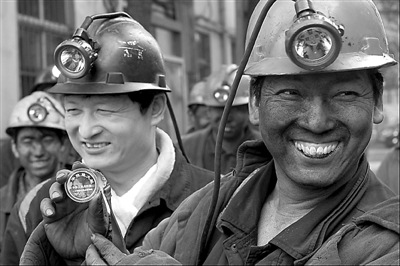 3月12日,结束外出巡回报告的河南中平能化集团七矿开拓四队队长白国周回到矿上上班。榜样回岗,交接班的工友们围上来庆贺,白国周也高兴地向大家展示上月末在北京获得的中华技能大奖奖章——一枚重50克的金质奖章。工友叶振立(右)拿着奖章高兴地说:“以前总看到运动会为获奖选手发金牌,现在给劳模发金牌可是第一回见啊!”郑巍 李志勇摄