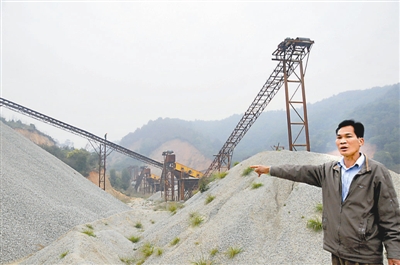 广东省普宁市一个无证采石场在将近一年的时间里,炸山毁林300多亩,使自然植被受到严重破坏,水土流失造成水库被淤埋,周边近3万村民生产和生活受到影响。在职能部门对该采石场明确定性为无证开采、责令停产的情况下,这一采石场却一直拆不掉、搬不走。新华社记者 周强 摄