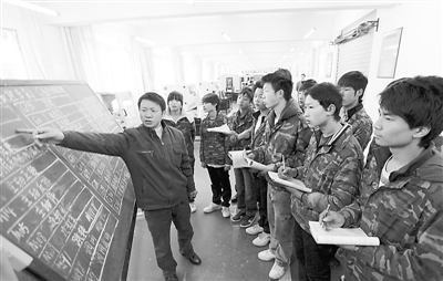 图为四川省广安市的新生代农民工在该市职业技术学校接受数控机床操作技能理论知识培训。