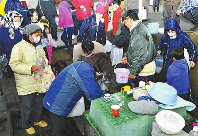 山田町每天发放两次物资,每人每次发放一瓶矿泉水和一块面包。虽然日本政府和志愿者已经尽了很大努力,但重灾区的物资供应仍然普遍紧张。