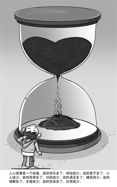 人心就像是一个容器,装的快乐多了,烦恼就少;装的君子多了,小人就少