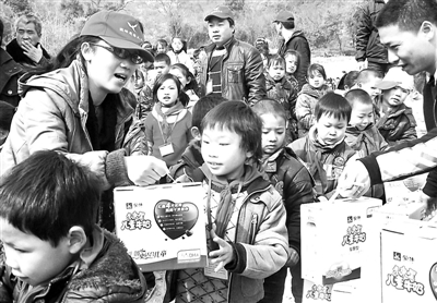 3月25日上午,位于浙江省温岭市横峰街道马安桥村的曙光农民工子弟学校,慈善义工们为每个学生送上了一箱蒙牛爱心牛奶。