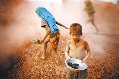 孟加拉于1992年就禁止了童工,但是据统计,740万儿童在孟加拉工作,工作条件极为艰苦,挣很少的工资。阿卡什摄于2010年11月9日