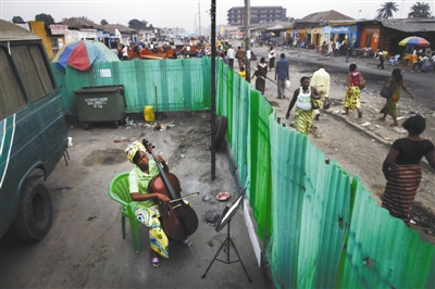 2010年7月23日,在刚果金沙萨,37岁的JoesphineMpongo在练习大提琴。Kimbanguiste交响乐团的成员每周有5天在这里练习演奏。安德鲁·麦克科耐尔 摄