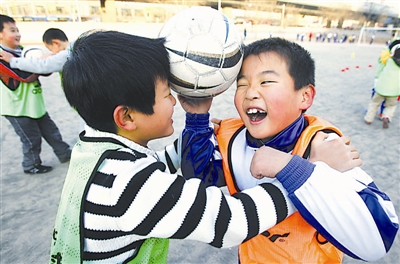 在训练中获得快乐,是保证孩子参与足球运动的前提之一 。