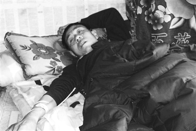 他已经在家里的土炕上躺了两个多月。这段时间,他无法站立、无法直接呼吸,必须24小时吸氧、24小时不停注射葡萄糖和消炎药的混合液。