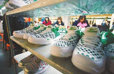 3月25日,在中国鞋都福建晋江市陈埭镇一运动鞋生产企业,工人们正有序地进行生产工作。据了解,随着国际原油、橡胶等原材料价格不断攀升,劳动力成本不断上涨,让众多体育用品企业感受到了不小的压力。 图图摄