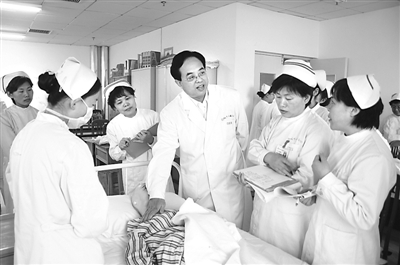 山东省聊城市人民医院在医护人员中深入开展优质护理服务示范活动,受到求医患者和社会各界的广泛称赞,试点病区病人满意度达到99.6%。如今,这家医院在实施国家“百万贫困白内障患者复明工程”项目中,已经为近百名贫困家庭白内障患者实施了手术。图为医护人员正在交流诊疗经验。王铭 摄