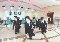 从3月28日开始,浙江德清县供电局正式在供电营业窗口全面推行标准化礼仪操,营造温馨的服务氛围,进一步提升供电服务品质。图为该局供电营业厅工作人员正在跳礼仪操。金霞 摄