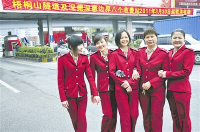 3月30日,深圳市梧桐山隧道及深莞、深惠边界8个收费站取消收费仪式在梧桐山隧道广场举行。梧桐山隧道工作人员在合影留念。
