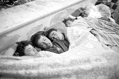 3月30日,由于利比亚局势紧张,大量难民涌向意大利距离非洲最近的小岛兰佩杜萨岛。目前小岛上的难民人数达到6000多人,已经超过了当地的居民人数。晚间,难民在户外裹被而眠。CFP 供图