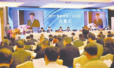 2011’海峡两岸工会论坛于4月13日在北京职工之家举行,来自海峡两岸工会和劳动界的350多位代表,围绕“ECFA时期的工会作用:组建工会和促进就业”这一主题,广泛交流、深入研讨,共商继续推动两岸工会及劳动界大交流、大合作工作之计。图为海峡两岸工会论坛会场。本报记者 许之丰 摄