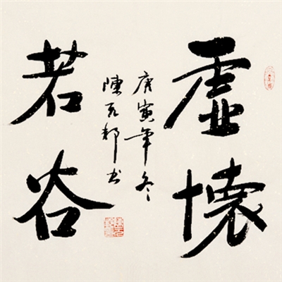 行书斗方《虚怀若谷》笔画婉转流畅,风格俊秀潇洒;行书条幅《胸有诗书气自华》,用笔圆转妍美,玉骨丰肌,风流潇洒,温文尔雅。 (陈其雄)