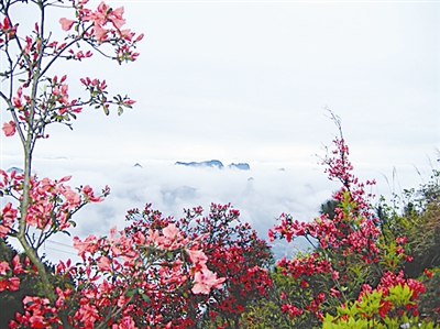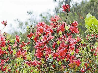 炽烈似火的杜鹃花,千姿百态,姹紫嫣红,装点着绵延的500里井冈山岭。红色的花海映照着红色的井冈山,一直延伸到山的最高峰,天的最边际。