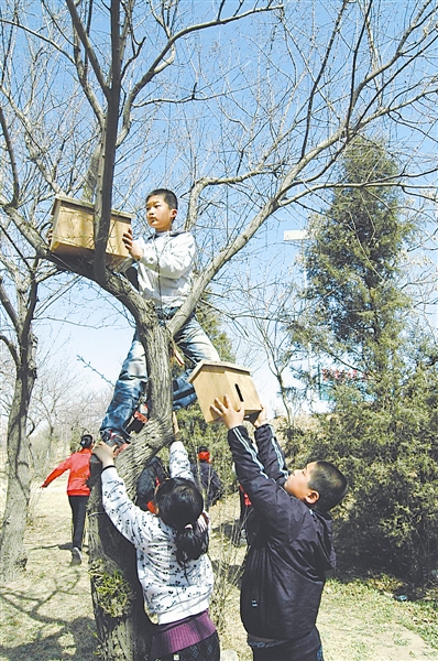 每年大约有百万只候鸟迁徙途经锦州地区。为迎接锦州市第30届爱鸟周,锦州市太和区平和小学爱鸟护鸟活动月4月14日拉开序幕,300余名被称为“小候鸟”的农民工子女动手制作鸟巢,并为鸟儿安新家,从小培养爱鸟护鸟、保护生物多样化的意识,繁荣校园生态文化,警示人们关注鸟类、关注环境、关注我们的家园。李铁成 摄