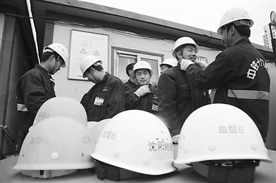 从3月起,沈阳地铁开始为建设者集中采集血样,以便为他们配发印有个人血型信息的全帽上。截至当日,这种血型信息安全帽配发完毕。这种安全帽可以帮助医生在发生意外事故时快速了解农民工个人信息,及时采取救助措施。 新华社发 (黄金崑 摄)