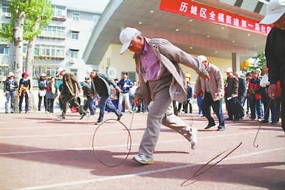 4月18日 ,济南市全福街道办事处第二届邻里节大型童趣运动会举行。来自社区的1000多名居民参加了12个单项和8个团体项目的角逐,此次运动会除定点投篮、套圈、跳绳、娱乐保龄球等常见项目外,增加了跳房子、推铁环、抽陀螺、弹玻璃球,弹弓击锣等童趣项目,让大家在游戏中尽情回味儿时的美好记忆,为居民提供了良好的邻里互助平台。 记者 孙覆海 通讯员 李聪颖 摄影报道