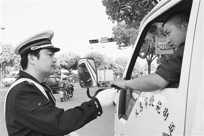 图为宣铭锋查酒驾的情形。