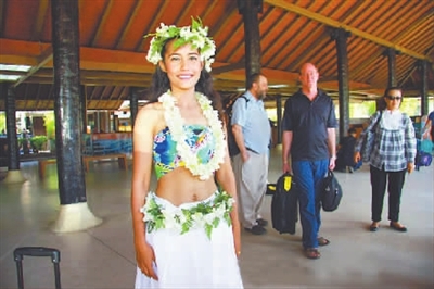 由于3月下旬泰国南部连绵暴雨引发水灾和泥水流,苏梅岛等南部度假海岛的旅游业受到重挫。而今洪水早已退却,泰南旅游业者力图迅速恢复当地旅游业。图为苏梅岛的导游小姐迎接客人。阿健 供图