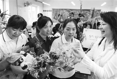 有病不能及时看,主要是教师待遇低,不敢去医院治疗,只能硬扛。去年获得新公民银粉笔奖的赵老师,今年在老家刚做完子宫肌瘤切除术,花费近万元。她是2009年在316医院体检查出的子宫肌瘤,拖了一年多才回老家手术,老家有合作医疗保险,能报30%~40%。眼下正躺在病床上的刘桃老师则非常不幸,也是2009年体检时查出的子宫肌瘤,因没及时治疗已发展成子宫癌,目前住院费已接近5万元。据一些没参加体检的老师反映,他们不是不愿意体检,而是怕体检出问题又没有医保,家庭负担不起,心理上更承受不了这个打击。