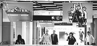 上海地铁车站宣传劳动光荣