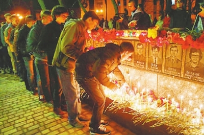 4月26日,乌克兰切尔诺贝利核电站附近的小城斯拉夫蒂奇,人们点燃蜡烛纪念在切尔诺贝利核事故中英勇献身的消防员。今年的4月26日是切尔诺贝利核事故25周年的纪念日。肖劼 供图