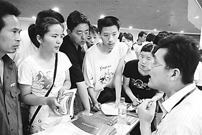 高职院校招生要探索符合高职教育培养人才规律的选拔模式。图为招生工作人员现场解答考生家长的问题。(资料图片)