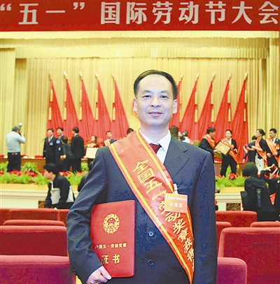 全国“五一劳动奖章”获得者——中国工商银行福建省三明分行行长林民荣4月28日下午在北京人民大会堂接受表彰。