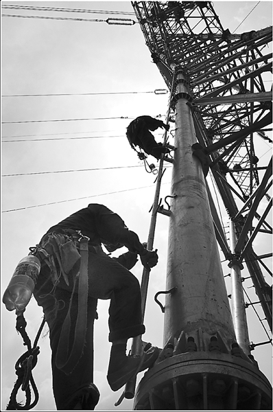 供电人员仔细检视所有细微节点