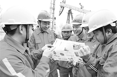 4月21日,河南中原油田采油六厂井下作业大队第一季度“劳动明星”和“先锋党员”的简报刚到班前会上,员工们便争相观看,一睹劳动明星的风采。“五一”节前,井下作业大队开展了“让劳动更光荣”、“让党旗更鲜艳”暨争当 “劳动明星”和“先锋党员”主题活动。号召广大职工每季度评选我身边的“劳动明星”和“先锋党员”,并通过大队编发的《聚力》简报、公开栏、灯箱等进行大力宣传。仝江 摄