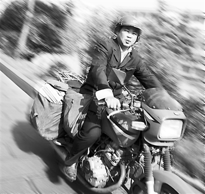 跟每天一样,4月26日早上6时多,河南新密市邮政局裴沟储蓄所投递班投递员陈国常,就已经把报纸、信件及汇款单等分发完毕打包骑上摩托车出发了,邮包是沉重的、山风是刺骨的,路也是崎岖难行的,他独自骑着摩托沿着矿区曲折蜿蜒的山路,走遍20多个山村、厂矿企业、往返50多公里……他用一路的艰辛、一路的汗水、一路的真情,创造了一名普通劳动者的价值。图为4月26日,陈国常在投递途中。 王强 摄