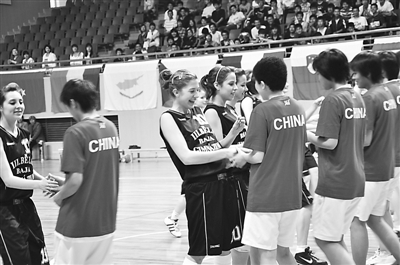 在比赛期间,中国中学生女篮的小队员充当起了临时摄影师,用手中的摄像机记录下队友和对手的点点滴滴。