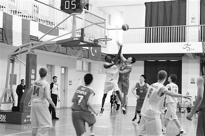 图为中国中学生男篮在与比利时队的比赛中激烈拼抢。