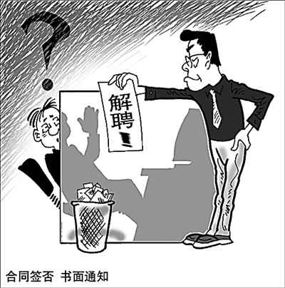 “我们不能用不愿签合同的人!” 漫画 李法明