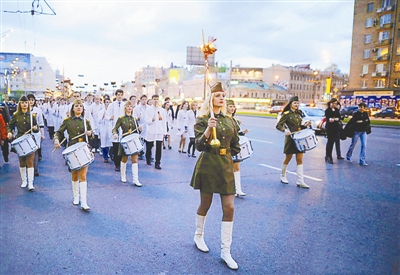 5月9日,俄罗斯将在首都莫斯科红场举行阅兵纪念卫国战争胜利66周年。图为5月6日在莫斯科,学生参加纪念卫国战争胜利66周年火炬点燃仪式。阿健 供图