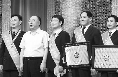 重庆市领导为获得全国五一劳动奖状单位颁奖、李恩华局长(右二)代表单位领奖
