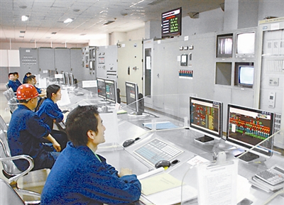 工人在湖南华菱湘潭钢铁有限公司发电机组监控室实施监控(5月9日摄)。