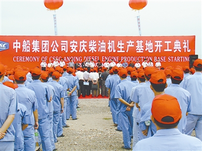 新厂建设夯实发展基础。早在2004年,工厂主要领导就以超前的思维,考虑到一旦船市兴旺期到来,要想抓住机遇,抢占市场,分到较大蛋糕,就必须加快工厂产品能力建设。为此,厂领导班子果断做出决策:以土地置换、异地拆建的方式,筹措发展资金,新建柴油机生产基地,做大做强企业。中国船舶工业集团公司充分肯定并大力支持企业的这一决策。2005年6月20日,集团公司对项目可行性研究报告进行了批复。8月18日,安庆市人民政府常务副市长孙爱民在开发区工厂新厂区主持了中船集团公司安庆柴油机生产基地开工典礼,中船集团公司副总经理路小彦,安庆市委书记韩先聪、市长朱读稳等领导,以及日本大发柴油机株式会社渕田会长等贵宾出席。安柴人轰轰烈烈的“二次创业”就此全面展开!