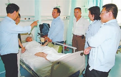 杜雄勇(右四)到医院看望患病职工
