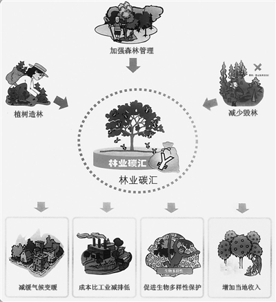 “过去政府集中精力减排,对林业碳汇关注不够。现在国际社会一致认可林业碳汇成本比工业减排低,且有多重效应——吸收二氧化碳、促进生物多样性保护、水土涵养、防沙、增加当地社区居民收入等。“王小平说。