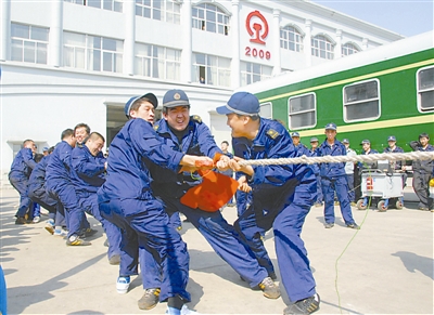 沈阳车辆段把开展丰富多彩的职工体育活动,作为企业文化建设的重要内容,经常组织开展拔河、篮球、足球比赛等文体活动,丰富职工业余文化生活。图为该段正在进行的职工拔河比赛。毕昆 杨蕾 摄影报道