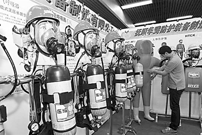 正压式消防空气呼吸器。新华社发(赵冰 摄)