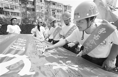近日,奋战在重点工程——合肥市合作化南路高架桥工地的建设者,举行了隆重的“创建党员先锋工程、争当合肥大建设标兵”创先争优公开承诺,广大党员和劳动模范宣誓承诺,以实际行动创先争优,高质量、高效率地完成建设任务,打造一流工程质量,以优异成绩向党的90周年献礼。