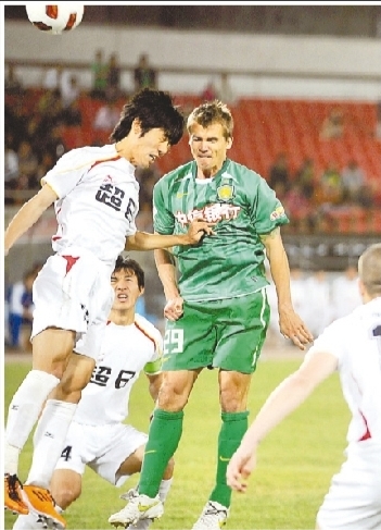 5月11日晚,在中国足协杯赛第二轮的一场比赛中,北京国安队主场迎战中甲的上海东亚队。结果,国安队凭借第58分钟张稀哲的门前补射以1比0获胜,顺利晋级第三轮。图为东亚队门前一片混战。