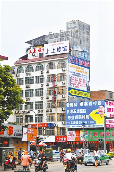 近日,网民反映,广西贵港市闹市区一栋7层楼的宾馆上方加建了约三层楼高度的建筑,显得突兀并且岌岌可危。据悉,这栋楼上方加盖的建筑确属违法建筑。对此,贵港市住房和城乡规划建设委员会给出的解释却是未接到群众举报。